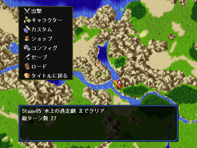 | タイトルに戻る | タイトルに戻る。セーブせずにタイトルに戻ると、これまでの操作が消えてしまうので注意。 |
