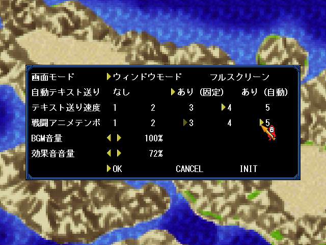 | コンフィグ画面。タイトル画面からでも同じことができる。 |